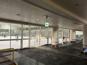 階段を登ると更衣室や椅子、ロッカーがあり、奥へ進むとスケートリンクがありました。