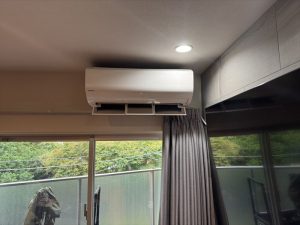 ワンちゃんをバルコニーで安全に快適に遊ばせたいとのご要望で、エアコン室外機を床置きから壁掛けへの移設工事を致しました!
