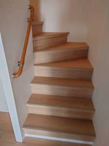 既存の木製階段に後付けタイプのノンスリップを設置しました。 ご自宅や施設内での転倒事故が起こりやすい場所のひとつが「階段」です。 ちょっとした工事ですが、毎日の安心感は大きく変わります!